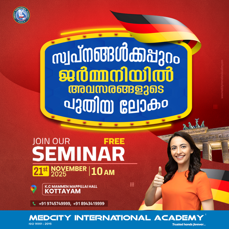 Learn IELTS and OET from Medcity International Academy (MIA), India’s most sought-after training centre with its Head Office in the evergreen state of Kerala, Kannur and branches in Mangalore, Kottayam, Thiruvalla, Kanjikuzhy, Thodupuzha, Mavelikara, Kochi, Kozhikode, Kattappana, Muvattupuzha, Pala, Trivandrum, Kollam, Thrissur, Kothamangalam. Numero uno in the field of English language training, we empower students to crack the IELTS exams through focused, friendly and flawless training strategies supplemented by cutting-edge pedagogical equipment and materials. Medcity conducts language assessment tests like the IELTS, OET, TOEFL, PTE, Duolingo English Test, CELPIP and nursing assessment tests like the NCLEX-RN, Prometric, CBT(UK), DHA, HAAD, MOH, BLS, ACLS. Classes in German and French are also conducted.